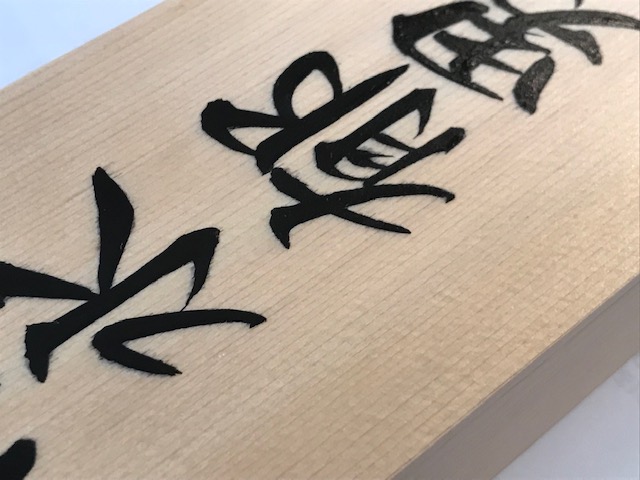 おはようございます。 金沢市のはんこ屋・塩屋です。先ほどまで降っていた雨もあがり、窓から陽がさしこんでいます。さて、先日 書いた表札に塗ったニスが乾き完成しました。筆先の消耗が早いため、今回は新しい筆で書いてみました。昔ながらの手書きの表札...