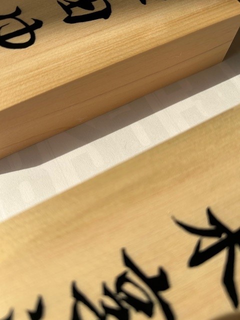 こんにちは、金沢のはんこ屋・塩屋です。今日も快晴の暖かな天気になりました。さて、先日の事ですが桧の表札を2個書き上げました。一つはお名前が平仮名なので文字の大きさに注意しながら書きました。ハンコと同じで平仮名が含まれるとバランスが難しいです...