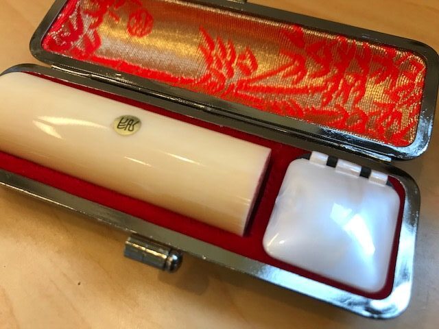 先日承った娘さんの柘の12ミリ丸にファースト・ネーム(名)で彫らせていただいた実印用印鑑です。