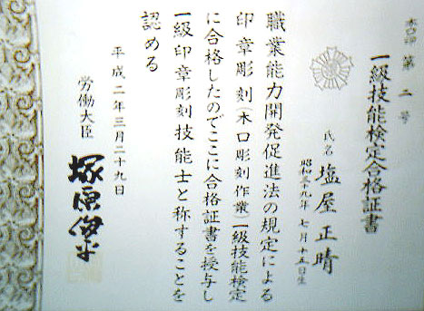 こんにちは、金沢のはんこ彫刻士、塩屋です。