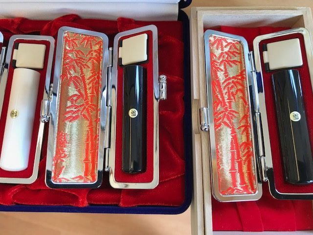全て当店独自の新篆書体(お札に印刷してあるハンコをアレンジした書体)で3本全て悠然とした雰囲気で彫らせていただきました。