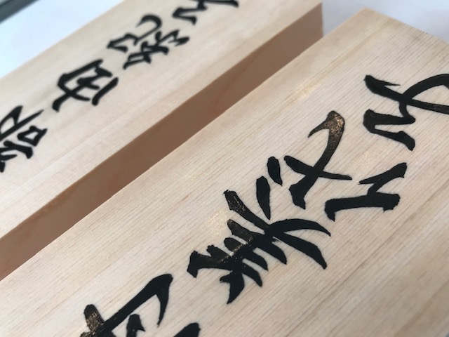 さて、昨日、桧の表札を2枚書き上げました。二つとも漢字5文字のものです。