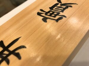 さて、先週末に書き上げた表札が表面に塗ったニスも乾き完成しました。