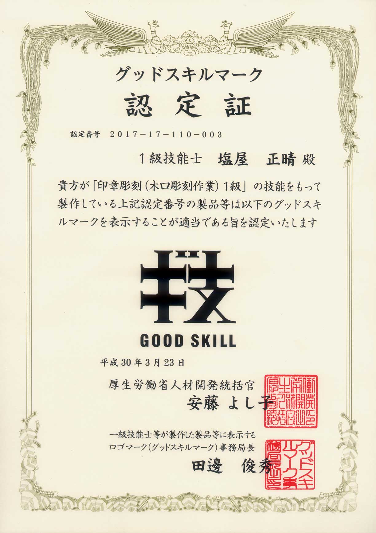 「完全手彫り印鑑を証拠付きで見える化!」100%手彫りの はんこ です。
